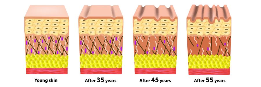 kita memproduksi lebih sedikit collagen yang menyebabkan kulit kering